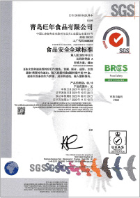 旺年堅持以食品安全作為發(fā)展的基石,除通過ISO9001、ISO14001、ISO45001、HACCP等體系認(rèn)證外,還成為了業(yè)內(nèi)為數(shù)不多具備出口食品生產(chǎn)企業(yè)資質(zhì)、通過英國零售商協(xié)會(BRC)頒發(fā)的全球食品安全標(biāo)準(zhǔn)A級認(rèn)證并獲得出口產(chǎn)品內(nèi)外銷“三同”證書的企業(yè)之一,產(chǎn)品出口美國、加拿大等多個國家和地區(qū)。